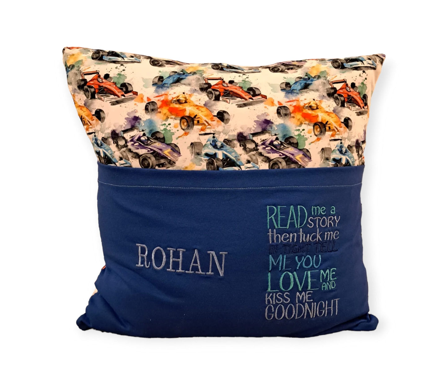 These can be fun for all ages. The covers are made with soft jersey fabric, usually one main patterned fabric with a plain coloured pocket. The price includes embroidery on the pocket. There are several options available or you can also request what you would like embroidered. You may also choose to personalise with a name, available on all options. You might choose just to have a name, or no embroidery at all. (prices are the same without embroidery)