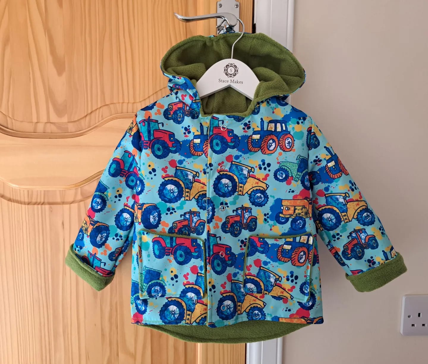 Made with a waterproof fabric on the outer and a cosy fleece on the inner. These are fully lined and have a hood. They fasten with secure popper buttons but can be made with toggles on request.