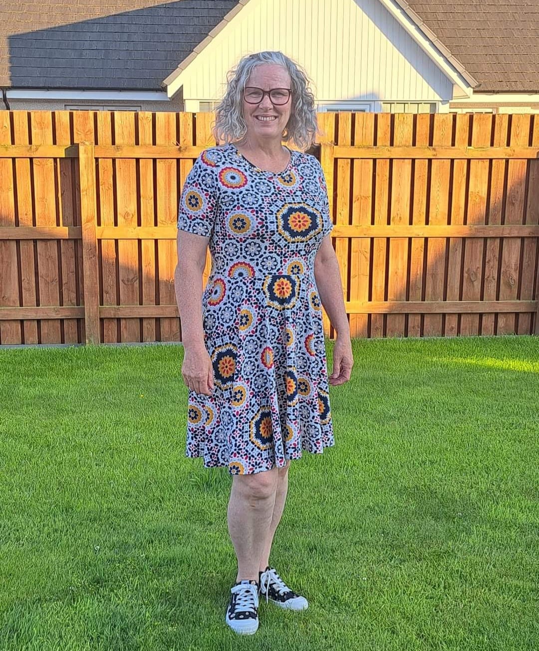 These are great for every day wear. Made with soft jersey fabric. You may choose to have short, long, or ¾ length sleeves, if not stated, they will be made with short sleeves. The skirt sits around Knee length. Made with a half circle skirt. These can be made with all one fabric or with a plain coloured top and a patterned skirt.