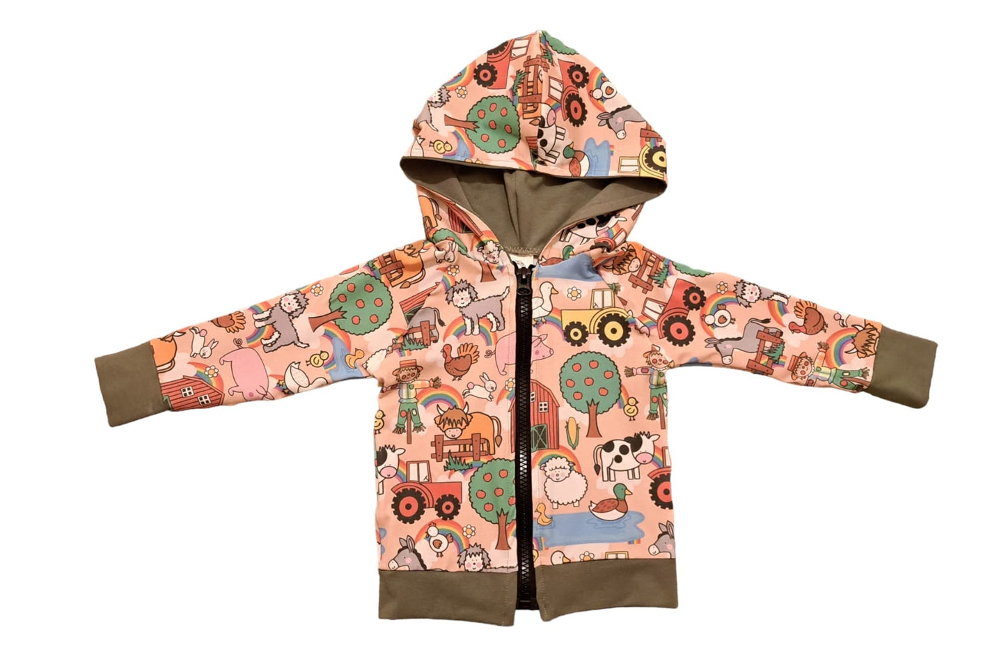 There are various options for these. For a more light weight hoody, I use a jersey fabric but for a more jumper thickness, I use French Terry fabric (much like jumper fabric) Please state your preference when ordering. You may also choose to have a contrasting colour for the lining of the hood, cuffs and waistline or you can have all one fabric. I match the zip to a colour in the fabric but if you have a specific zip colour you would like, please also state when ordering.